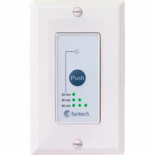 The RTS5 is compatible with Fantech Flex 100H, VHR70R,VHR100R, VHR150 and VHR150R. The push button activates the system to run in continuous mode for 20, 40 or 60 minutes, it then returns to the predetermined setting. To cancel this operation, simply press the button a fourth time.