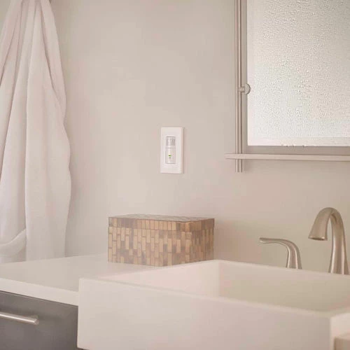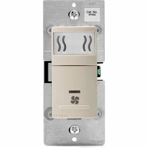 The Leviton Humidity Sensor and Fan Control automatically detects excess humidity in a room and activates the ventilation fan to lessen condensation which helps reduce mold and mildew. The sensor uses a microprocessor combined with state-of-the-art digital sensing technology to continuously monitor and manage humidity levels in areas of the home prone to condensation and mildew. It features user-friendly controls to adjust sensitivity, humidity level and time-out settings. The sensor can replace a single pole switch and can be used with most bathroom or ventilation fans or fan/light combinations. It is designed to fit within a standard wallbox and requires a neutral wire for operation. Contemporary in design, the Humidity Sensor and Fan Control is the ideal solution for controlling ventilation in areas of high humidity, dampness or rooms prone to condensation and mildew such as: Bathrooms, Basements, Laundry Rooms and Home Spas. The sensor also helps reduce energy usage by automatically operating the fan only when needed to control excess humidity. Wallplate/Faceplate not included.