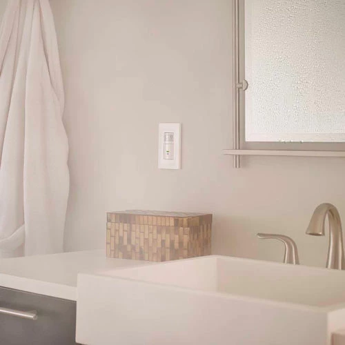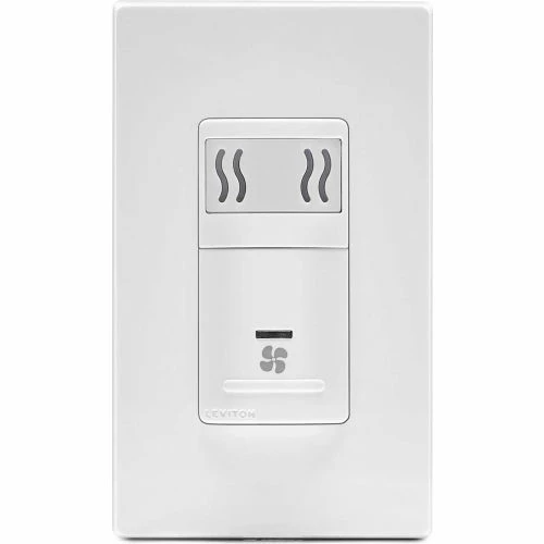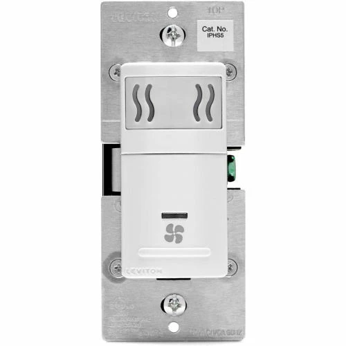 The Leviton Humidity Sensor and Fan Control automatically detects excess humidity in a room and activates the ventilation fan to lessen condensation which helps reduce mold and mildew. The sensor uses a microprocessor combined with state-of-the-art digital sensing technology to continuously monitor and manage humidity levels in areas of the home prone to condensation and mildew. It features user-friendly controls to adjust sensitivity, humidity level and time-out settings. The sensor can replace a single pole switch and can be used with most bathroom or ventilation fans or fan/light combinations. It is designed to fit within a standard wallbox and requires a neutral wire for operation. Contemporary in design, the Humidity Sensor and Fan Control is the ideal solution for controlling ventilation in areas of high humidity, dampness or rooms prone to condensation and mildew such as: Bathrooms, Basements, Laundry Rooms and Home Spas. The sensor also helps reduce energy usage by automatically operating the fan only when needed to control excess humidity. Wallplate/Faceplate not included.