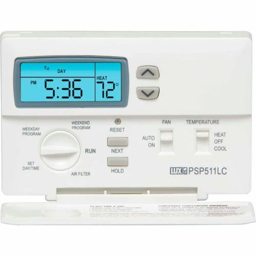 LUX Low Voltage Digital 5/2-Day Programmable Thermostat PSP511LC – 1 Stage Heat and Cool 24 VAC
