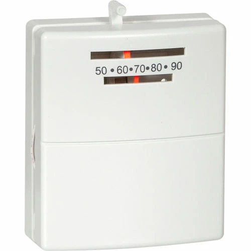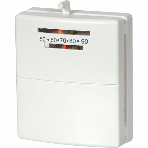 Snap action, heat-only mechanical thermostat. Easy to install, mercury free, clean attractive design, with adjustable heat anticipator. Temperature control range 45ºF to 90ºF (7ºC to 32ºC) accuracy: 1±ºF over a range of 50ºF to 95ºF. Electronically rated 24 VAC (30 VAC Max). Compatible with most 24V gas, oil, electric systems, 2 wire hydronic systems, millivolt systems, hydronic air handlers and single-stage heat pumps. Not compatible with 3 wire hydronic systems, multi-stage heat pumps, 120V / 240V systems. Meets IP20 rating. 5 year limited warranty.