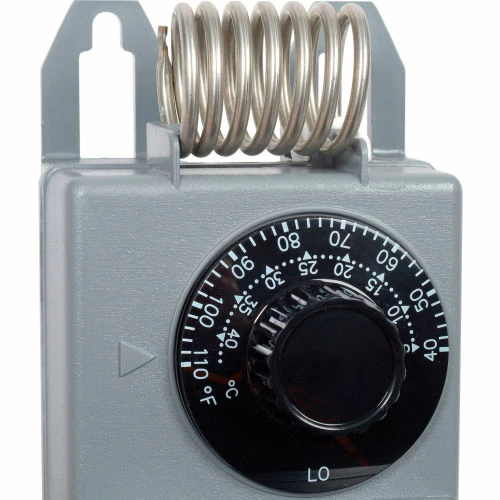 Fast, easy & portable temperature control at a specific location. TF115P-002 industrial application thermostat is built for long-term, reliable performance while withstanding harsh climate conditions. With simple plug-in set up, user just plugs it into device power source. Easy configuration for heating or cooling, makes portable use easy. Analog thermostat is has a rugged, weather resistant enclosure, which enables placement most anywhere. It tolerates moist conditions, performs despite water spray, high humidity, airborne contaminates & moderately corrosive conditions. Large, visible dial, makes set point temperatures clear. Enclosures comply with N.E.C. Article 547, giving code compliance peace-of-mind. Thermostat is built from corrosion resistant materials, allowing long life & reliable performance in most demanding climates.